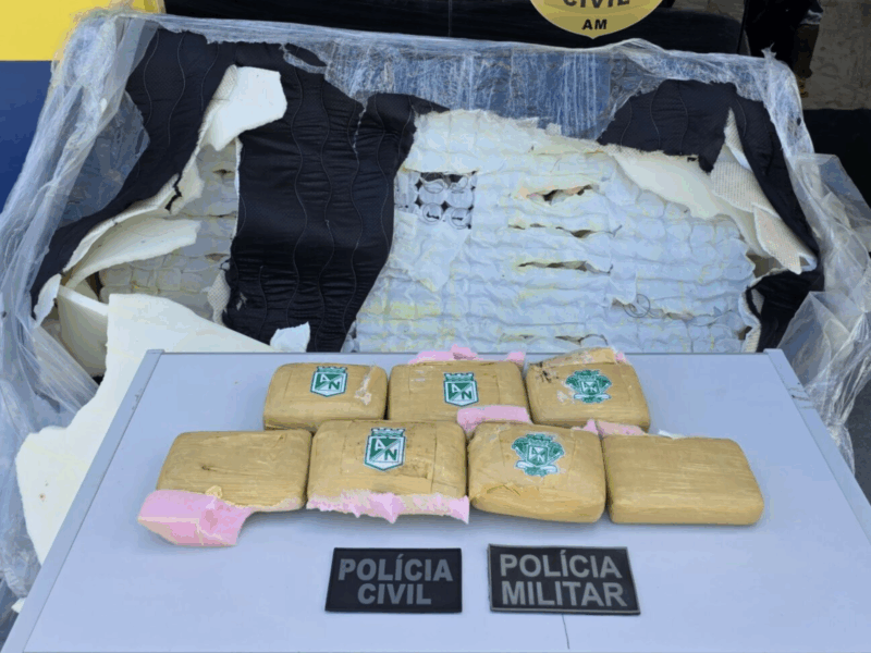 Na última quinta-feira (13), mais de 8 quilos de maconha foram apreendios em uma embarcação atracada em Amaturá, interior do Amazonas. A droga estava escondida dentro de um colchão de casal. A ação foi realizada pela Polícia Militar do Amazonas (PMAM).